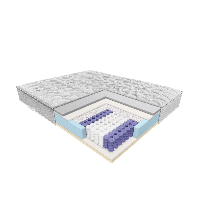 - 7-strefowa sprężyna kieszeniowa, obustronnie przekładka filcowa i pianka poliuretanowa o wys. 2 cm, jednostronnie pianka termoelastyczna o wys. 3 cm, jednostronnie pianka wysokoelastyczna HR o wys. 3 cm